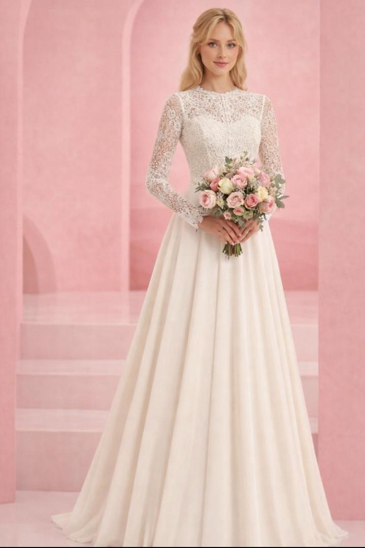 Vi har et stort udvalg af a line og havfrue brudekjoler i showroom hos Nordiske brudekjoler. I showroom har vi over 300 stk brudekjoler med lange ærmer i diverse styles.