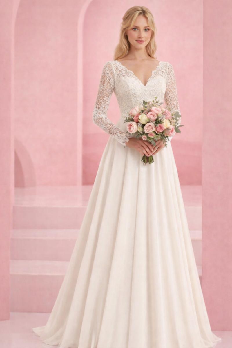 Vi har et stort udvalg af a line og havfrue brudekjoler i showroom hos Nordiske brudekjoler. I showroom har vi over 300 stk brudekjoler med lange ærmer i diverse styles.